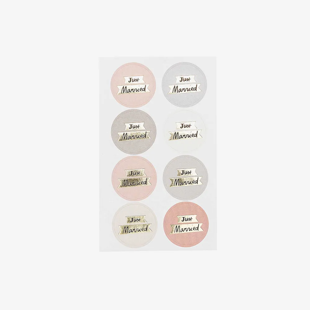 These “Just Married” Stickers Pink Powdery And Gray Will Be Perfect For Decorating Your Wedding Thank You Cards Or For Your Photo Album!