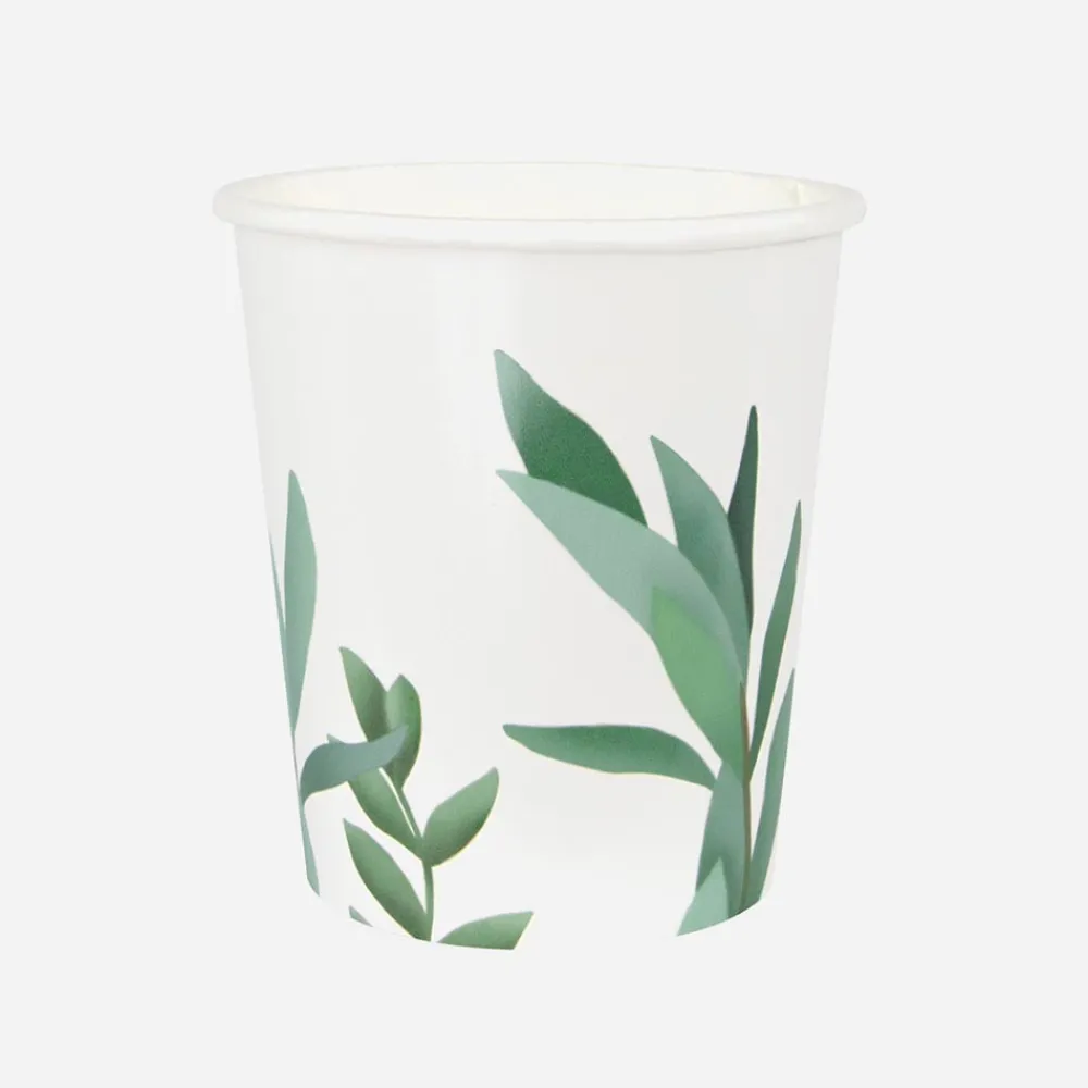 For A Baby Shower, A Baptism, A Wedding Meal Or A Birthday 1 Year, These 8 Cups Cardboard-Based Decorated With A Eucalyptus Pattern Are Perfect.