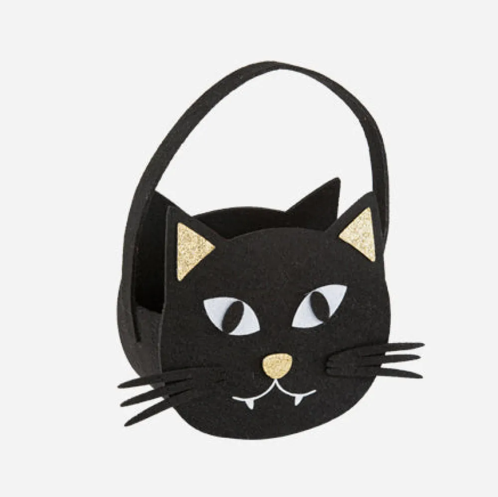 We Found The Perfect Basket To Go To The Halloween Candy Hunt ! This Black Cat Basket Decorated With Golden Glitter Is Absolutely Cute!