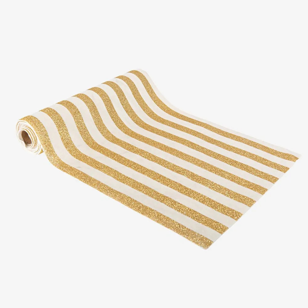 This Table Runner With White And Gold Stripes Is Ideal To Complete A Table Decoration For New Year’S Day Or A Wedding By The Sea.