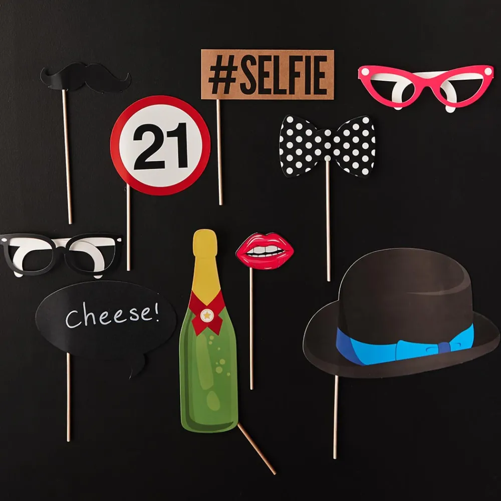 Take Memorable Photos With This 21 Years Photobooth Kit! Composed Of 10 Photobooth Accessories For A 21St Birthday, There Will Be Something For Everyone! Pose!