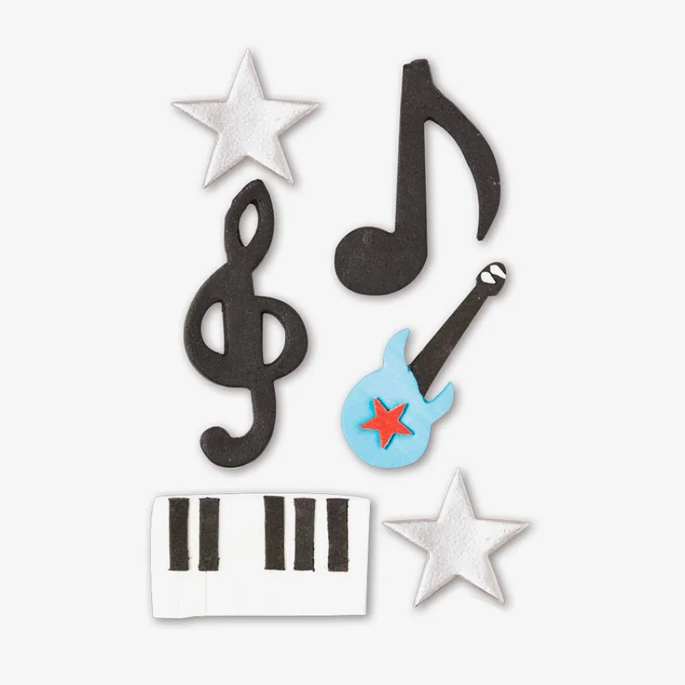 Check Out These 6 Sugar Decorations Entirely Edible On The Theme Of Music. They Are Ideal For Decorating Cupcakes Or Birthday Cake Of A Budding Musician.