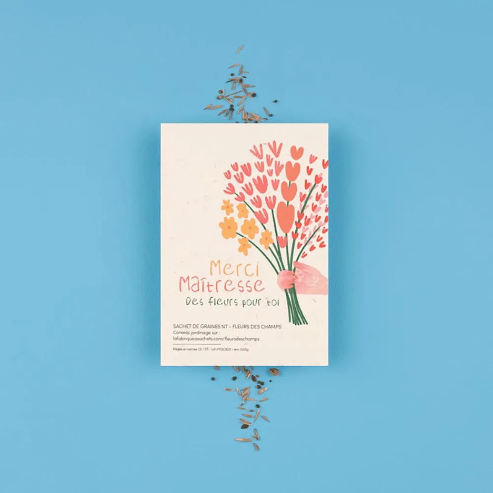 Are You Looking For An Idea Of Gift For Teacher Of Your Child? This Bag Of Organic Field Flower Seeds Decorated With The Inscription Thank You Mistress Is The Perfect Gift! Plant In The Ground Or On Your Balcony.