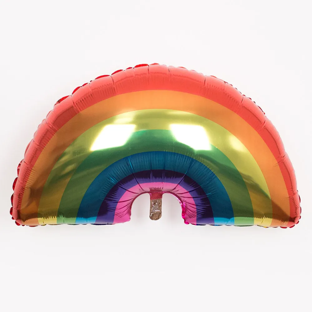 A Rainbow-Shaped Mylar Foil Balloon. It Will Go Perfectly For A Birthday Decoration For 1 Year And Over On A Cloud Or Rainbow Theme. It Is Also Perfect For A Baby Shower Decoration, Or A Rainbow Flag Party.