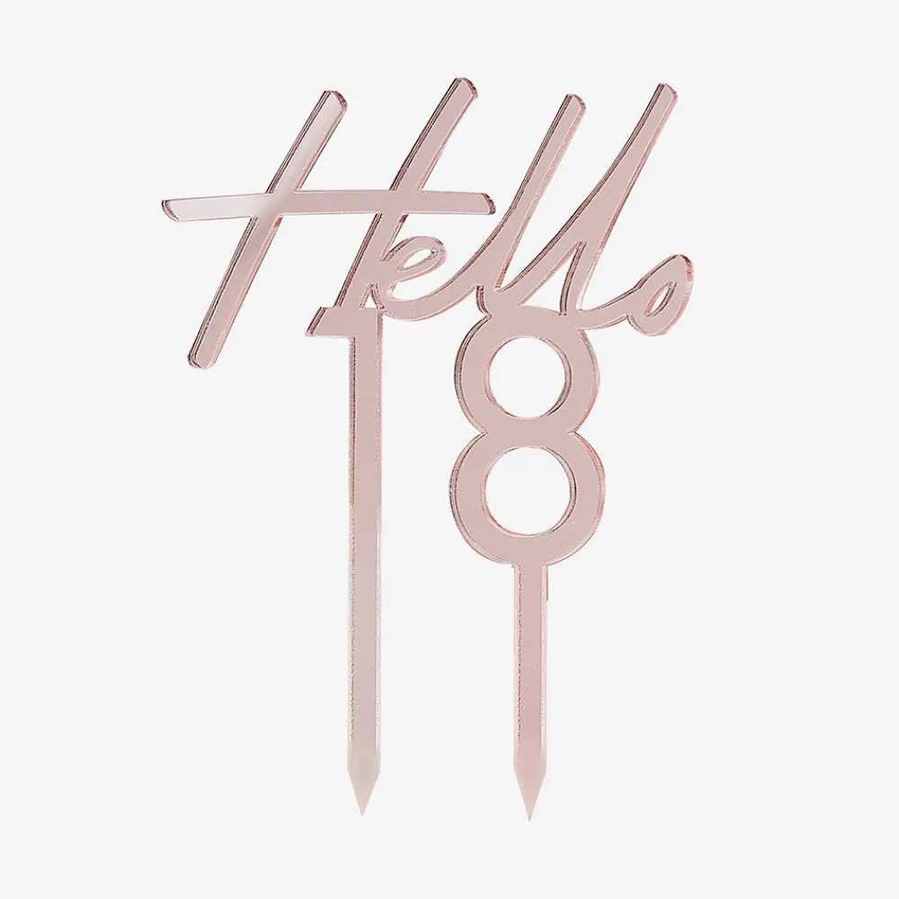 Rose Gold Birthday Cake Topper Forming The Inscription Hello 18. It Is Perfect For Decorating Your 18Th Birthday Cake.