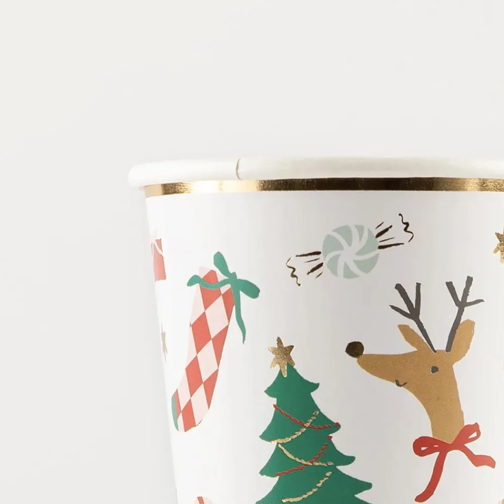 Are You Organizing A Christmas Eve Meal? These 8 Paper Cups Printed Christmas Patterns With Gold Edging Will Be Perfect For Your Table Of NOil.