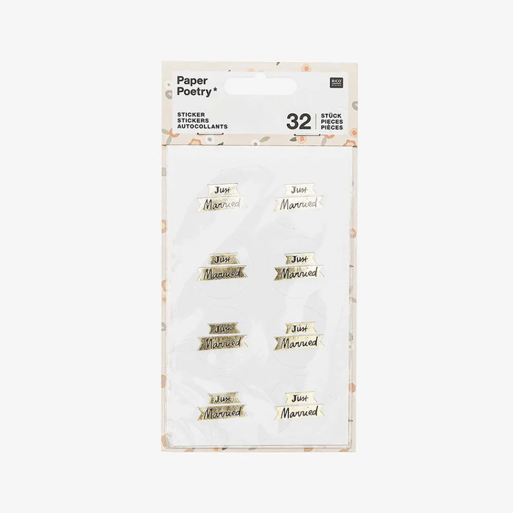 These Golden “Just Married” Stickers Will Be Perfect For Decorating Your Thank You Cards For Your Wedding Or For Your Photo Album Or Photo Frames!