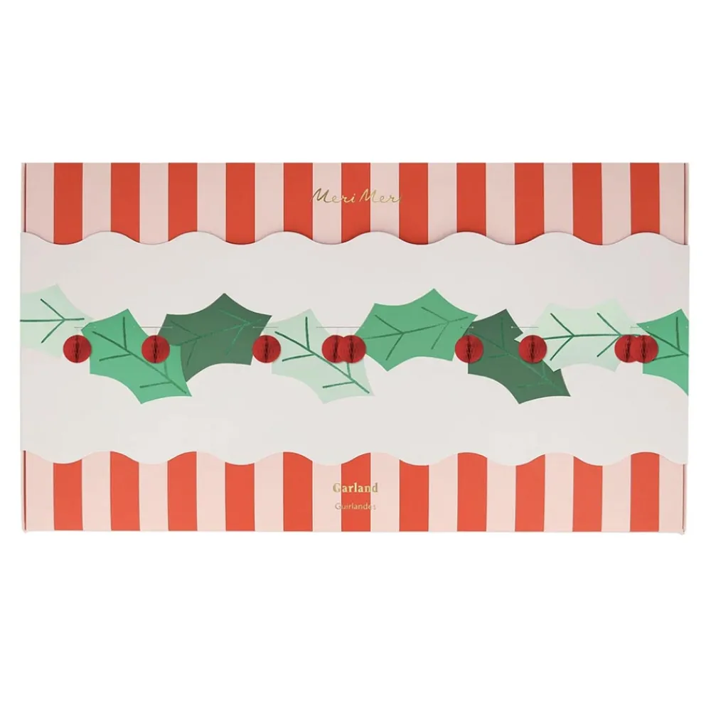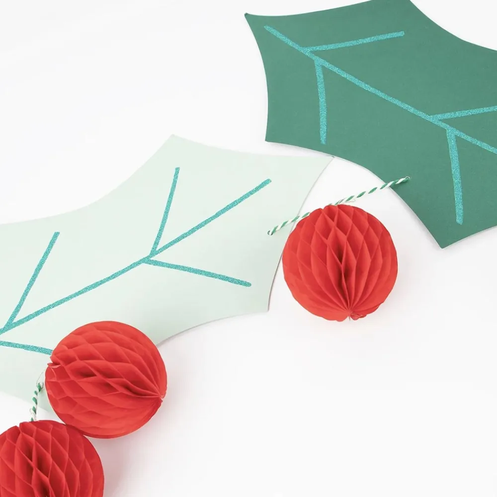 For Your Christmas Decoration, Opt For This Holly Garland In Honeycomb From The Meri Meri Brand! Ideal For Decorating Your Christmas Tree, A Railing, Your Front Door, Or Even Your Christmas Table.