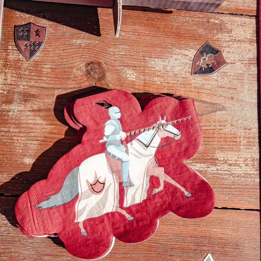 Organising An Knight Birthday For Your Child? These Paper Napkins Are Perfect For Decorating Your Table! They Represent A Knight On A Burgundy Background.