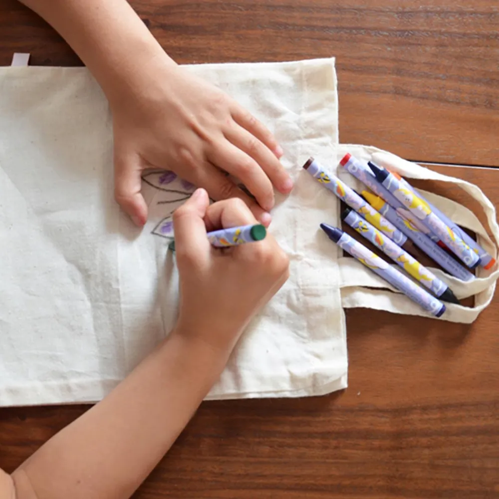 A White Fabric Bag. You Have To Draw Yourself On It During A Birthday Party Workshop To Have Your Own Personalized And Unique Bag! All The Friends Will Be Jealous In The Playground!