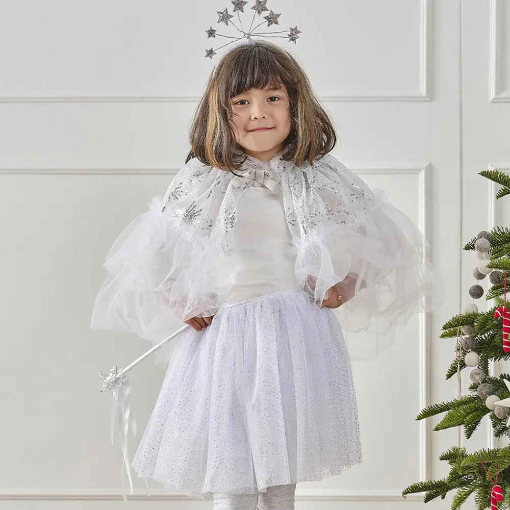With This White Tulle Cape Decorated With Silver Sequins, Your Daughter Will Have The Prettiest Outfit For The Carnival ! Combined With The Matching Headband It Is Absolutely Sublime. This Cape Is Perfect For Making A Princess Costume Or Fairy.