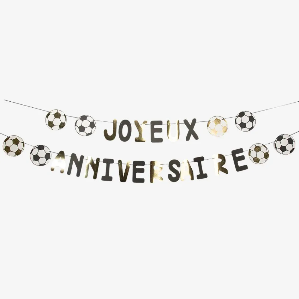 A Happy Birthday Garland Adorned With Soccer Balls, Ideal To Complete A Football Birthday Decoration For Children!