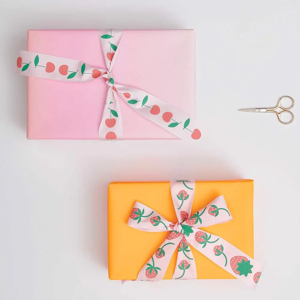 With This Ribbon Pink Decorated With Cherries, Make Beautiful Gift Packages For Christmas Or For A Anniversary. !