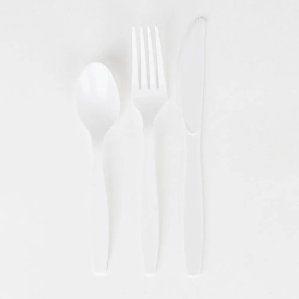 24 Place Settings (8 Sets) In White Plastic.
