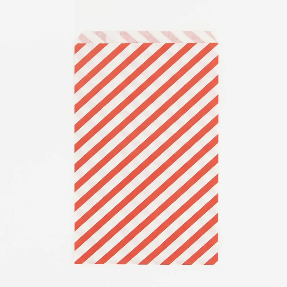 10 Paper Pouches Imagined By My Little Day, Decorated With Red Stripes For A Successful Child’S Birthday Party. Fill Them With Treats And Goodies Like A Badge And Mini Notebook Before Giving Them Away. Surprise Bag To The Guests. They Will Also Be Superb For Creating A Personalized Advent Calendar.