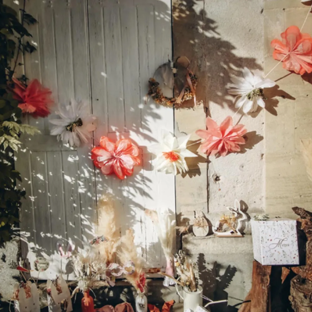 A Garland Of Tissue Paper Flowers In Shades Of Pastel Pink For A Floral Party Decoration. It Will Be Perfect For A Spring Wedding, An Encanto Or Frida Birthday, Or Even To Decorate A Child’S Room!