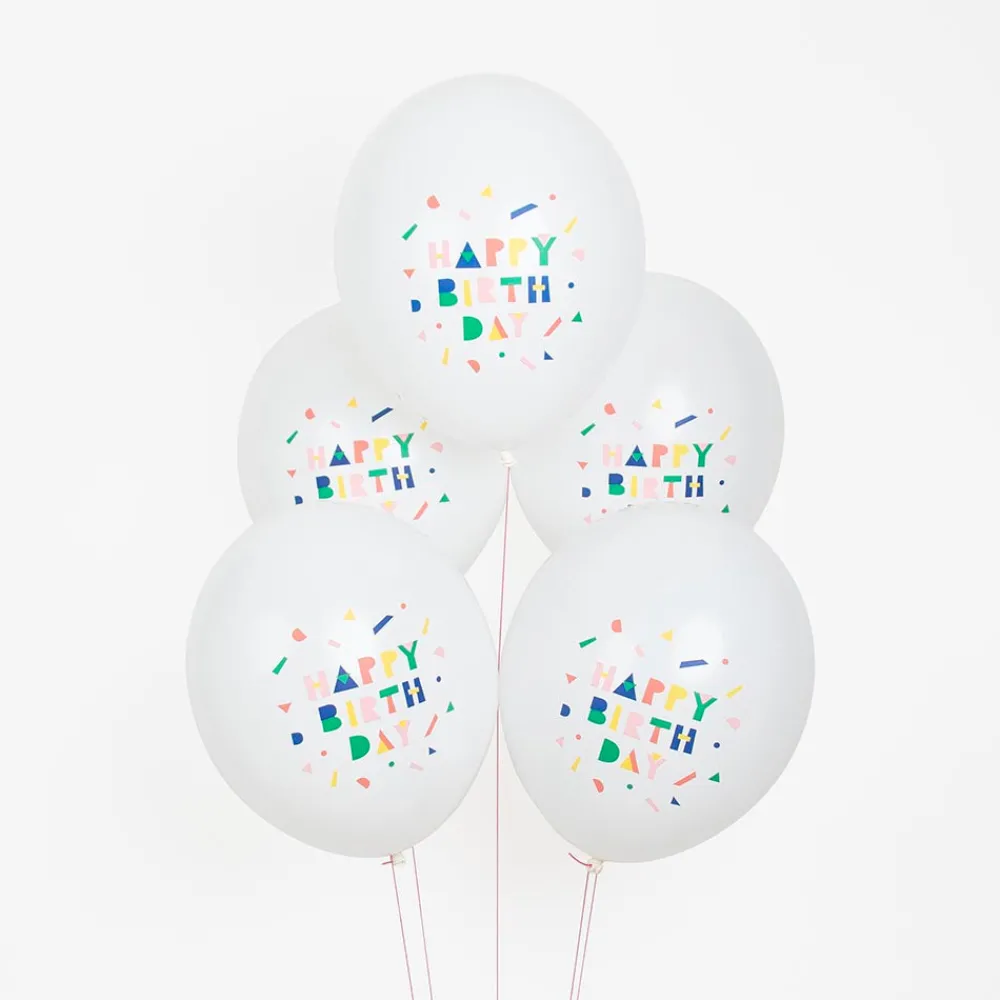 A Pack Of 5 Happy Birthday Balloons Imagined By My Little Day. Those Balloons Are Perfect For Making Birthday Decoration For Adults And Children Alike! They Match Perfectly With The Rest Of The Happy Birthday Collection For A Great Party! Feel Free To Pair Them With Other Balloons To Create A Stunning Birthday Balloon Arch.