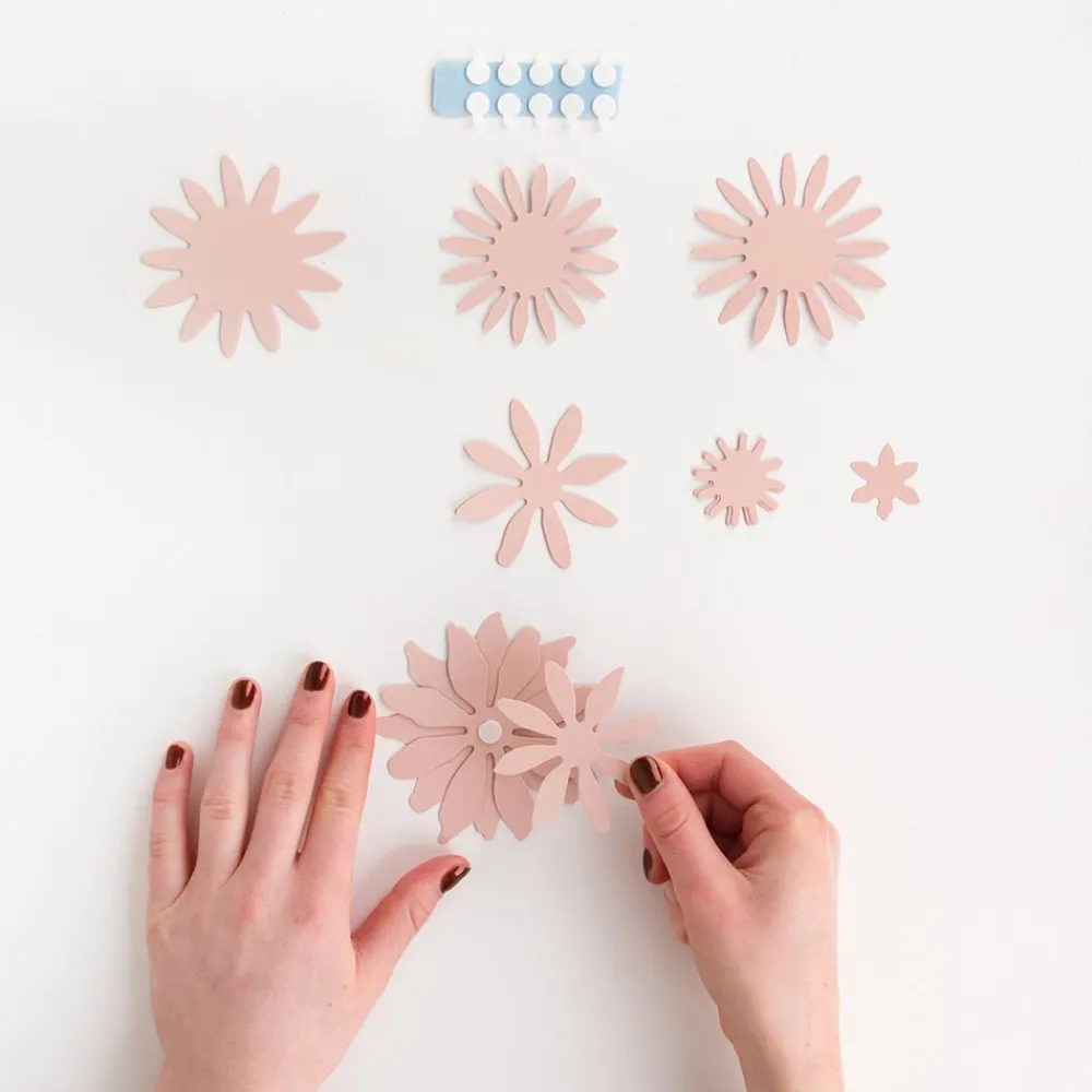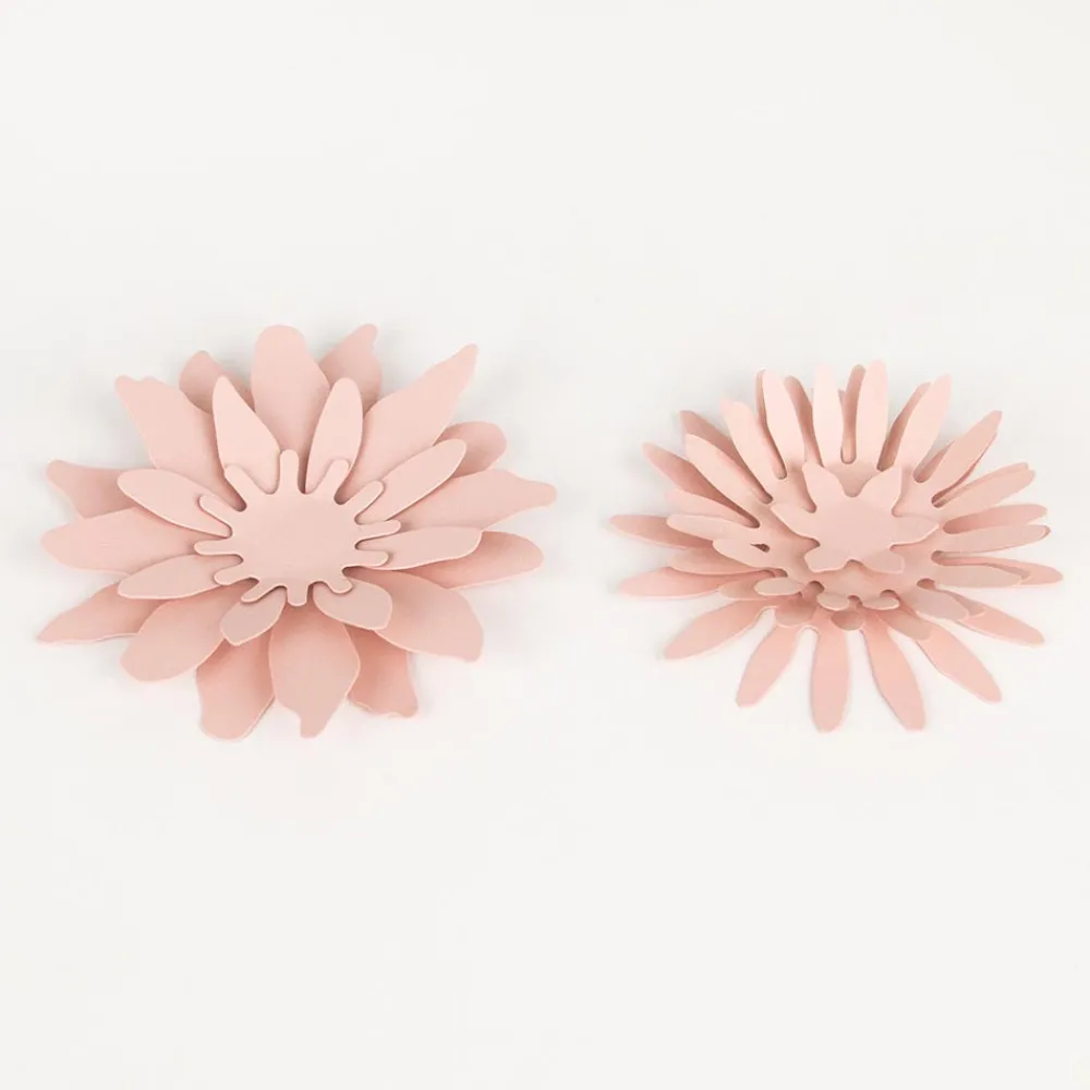 3 Paper Decorations In The Shape Of Powder Pink Flowers. These Small Decorative Elements Can Be Hung On The Wall, Placed On A Sideboard Or Table, Or Even Hung! They Will Bring A Delicate And Elegant Touch For A Birthday Decoration On A Floral Theme, A Wedding Or Even For A Baptism.