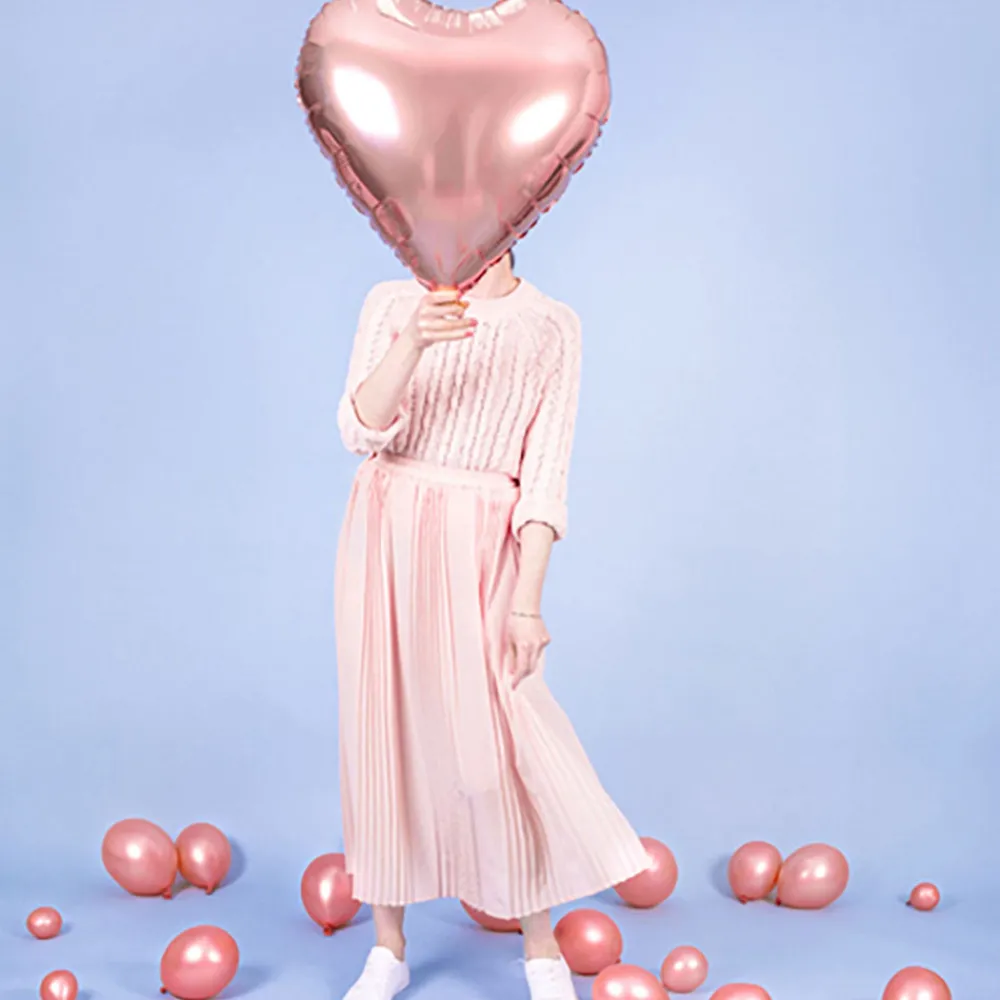 A Heart-Shaped Rose Gold Mylar Foil Balloon For A Princess Birthday, To Declare Your Flame On Valentine’S Day In Pink Or To Make A Baby Shower Decoration Or A Rose Gold Wedding Decoration!