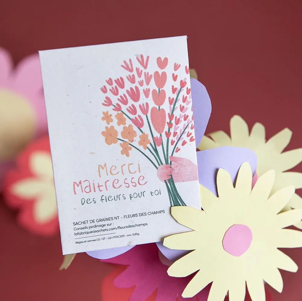Are You Looking For An Idea Of Gift For Teacher Of Your Child? This Bag Of Organic Field Flower Seeds Decorated With The Inscription Thank You Mistress Is The Perfect Gift! Plant In The Ground Or On Your Balcony.