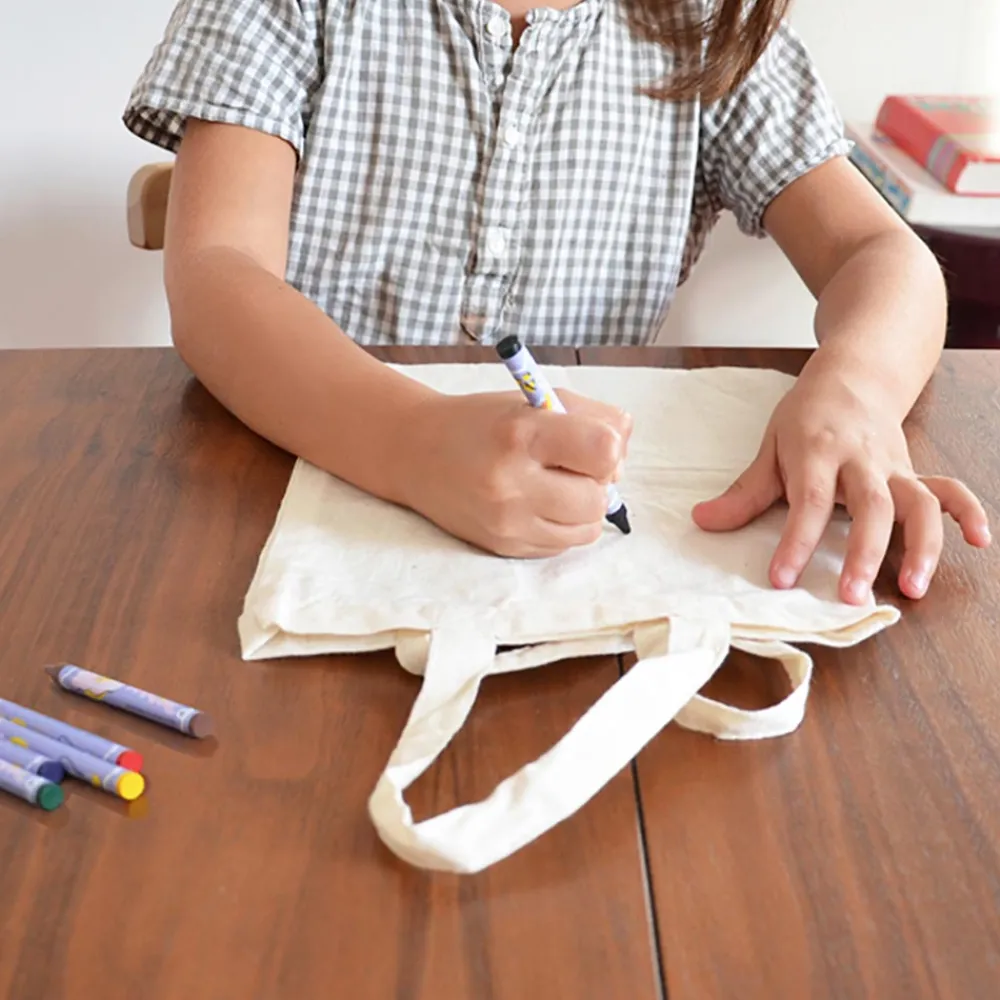 A White Fabric Bag. You Have To Draw Yourself On It During A Birthday Party Workshop To Have Your Own Personalized And Unique Bag! All The Friends Will Be Jealous In The Playground!
