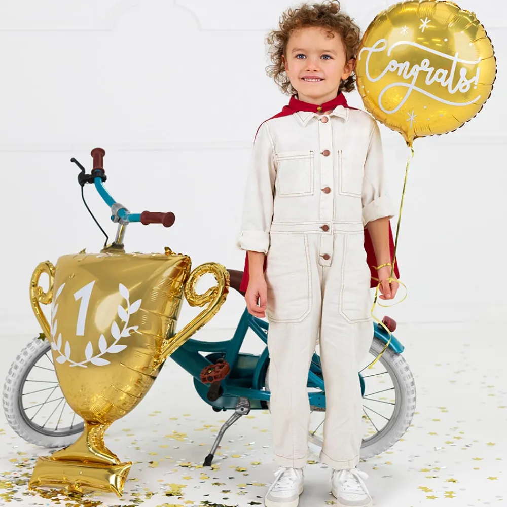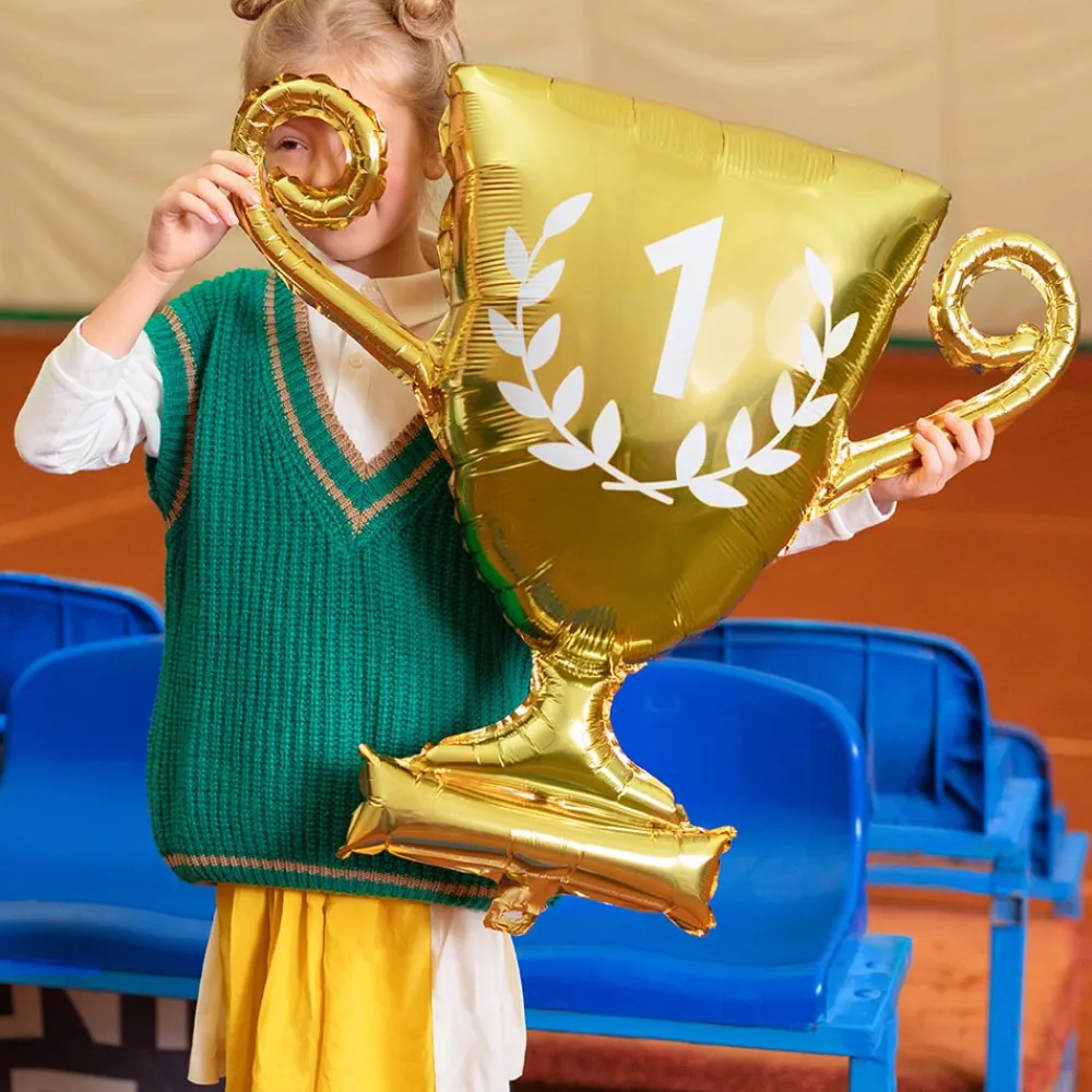 This Champion Cup Aluminum Balloon Is Perfect To Complete Your Football Birthday Decoration Or To Decorate Your Apartment During A Football Evening With Friends! You Can Inflate It With Helium So That It Floats!