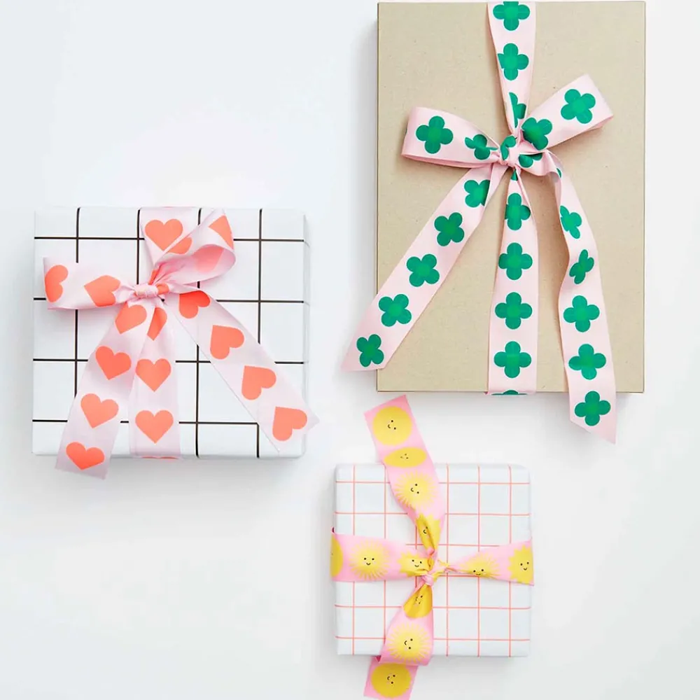 With This Ribbon Pink Adorned With 4-Leaf Clovers, Make Stunning Gift Packages For Christmas Or For A Anniversary. !